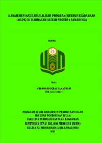 MUHAMMAD IQBAL RAMADHANI, 2023. “Manajemen Madrasah Aliyah Program khusus Keagamaan di Madrasah Aliyah Negeri 2 Samarinda”. Skripsi, Manajemen Pendidikan Islam (MPI) Fakultas Tarbiyah dan Ilmu Keguruan (FTIK) Universitas Islam Negeri Sultan Aji Muhammad Idris (UINSI) Samarinda. Penelitian ini dibimbing oleh Ibu Dra. Hj. Ananiah, M. M.Pd selaku dosen pembimbing I dan bapak Muhammad Khairul Rizal, M.Pd selaku dosen Pembimbing II.