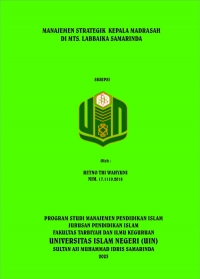 Retno Tri Wahyuni, 2023. “Manajemen Strategik Kepala Madrasah di Mts. Labbaika Samarinda”. Skripsi, Program Studi Manajemen Pendidikan Islam, Jurusan Pendidikan Islam, Fakultas Tarbiyah dan Ilmu Keguruan, Universitas Islam Negeri Sultan Aji Muhammad Idris (UINSI) Samarinda. Penelitian ini dibimbing oleh Dr. Zamroni, M.Pd sebagai pembimbing I dan Amalia Nur Aini, M.Pd sebagai pembimbing II.