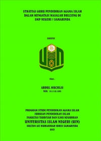 XMLAbdul Muchlis, 2023, “Strategi Guru Pendidikan Agama Islam Dalam Mengatasi Bullying Di SMP Negeri 7 Samarinda”, Skripsi, Program Studi Pendidikan Agama Islam Jurusan Pendidikan Islam Agama Islam Fakultas Tabriah Dan Ilmu Keguruan Universitas Islam Negeri Sultan Muhammad Aji Idris Samarinda (UINSI). Dalam penelitian dibimbing oleh Dr. Hj Robingatin, M. Ag selaku pembimbing I dan Rabiatul Adawiyah, M.Pd selaku pembimbing II.