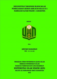 Ghifari Ramadhan, 2023, Implementasi Taksonomi Bloom Dalam Pembelajaran Akidah Akhlak di Kelas XI A Man 1 Samarinda. Skripsi, Program Studi Pendidikan Agama Islam, Fakultas Tarbiyah Dan Ilmu Keguruan, Universitas Islam Negeri Sultan Aji Muhammad Idris Samarinda Penelitian ini dibimbing oleh Bapak Drs. H. M. Said Husin, MA. Sebagai pembimbing I dan Bapak Wildan Saugi, M.Pd sebagai pembimbing II.