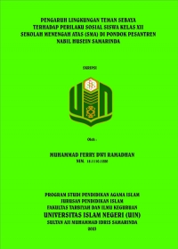 Muhammad Ferry Dwi Ramadhan, 2023. “Pengaruh lingkungan teman sebaya terhadap perilaku sosial siswa kelas XII Sekolah Menengah Atas (SMA) di Pondok Pesantren Nabil Husein Samarinda”. Skripsi. Program Studi Pendidikan Agama Islam, Jurusan Pendidikan Islam Fakultas Tarbiyah dan Ilmu Keguruan, Universitas Islam Negeri (UIN) Sultan Aji Muhammad Idris Samarinda. Dibawah bimbingan Prof. Dr. Muhammad Nasir, M.Ag sebagai pembimbing I dan Dr.H. Achmad Ruslan Afendi, M.Ag sebagai pembimbing II.
