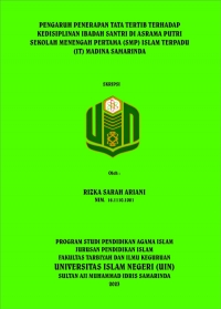 XMLRizka Sarah Ariani. 2023. Pengaruh Penerapan Tata Tertib terhadap Kedisiplinan Ibadah Santri di Asrama Putri SMP IT Madina Samarinda. Skripsi, Jurusan Pendidikan Islam, Program Studi Pendidikan Agama Islam, Fakultas Tarbiyah dan Ilmu Keguruan, Universitas Islam Negeri Sultan Aji Muhammad Idris (UINSI) Samarinda. Penelitian ini dibimbing oleh Bapak Drs. Darwis M.SI, sebagai pembimbing I dan Ibu Imroh Atul Musfiroh, M.Pd.I, sebagai pembimbing II.
