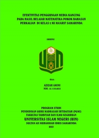 XMLAzizah AMINI, 2023, “Efektivitas Penggunaan Media Kancing Pada Hasil Belajar Matematika Pokok Bahasan Perkalian Di Kelas 2 Mi Ma’arif Samarinda”. Skripsi Jurusan Pendidikan Madrasah Program Studi Pendidikan Guru Madrasah Ibtidaiyah Fakultas Tarbiyah dan Ilmu Keguruan Universitas Islam Negeri Sultan Aji Muhammad Idris Samarinda (UINSI). Penelitian ini dibimbing oleh Bapak Abdul Razak, M.Pd selaku pembimbing I dan Ibu Amalia Nur Aini, M.Pd selaku pembimbing II.