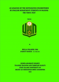 XMLBella Falahul Ima, 2023. An Analysis Of The Difficulties Encountered by English Department Students’ in Passing The TOEFL Test”. Thesis, English Education Department, Teacher Training and Education Faculty, Stated Islamic University of Sultan Aji Muhammad Idris Samarinda. Advisor: (1) Mr. Dr. Bahrani, M. Pd. (2) Widya Noviana Noor, M. Pd.