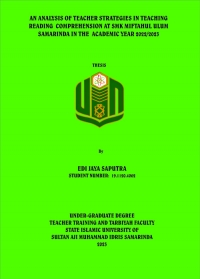 Edi Jaya Saputra, “An Analysis of Teacher Strategies in Teaching Reading Comprehension at SMK Miftahul Ulum Samarinda in the Academic Year 2022/2023.” Thesis, English Education Department, Teacher Training and Education Faculty, State Islamic University Sultan Aji Muhammad Idris. This research is under the guidance of Mrs. Dina Destari, S.S., M.Pd. as the first advisor and Ms. Nadia.,M.Pd.,M.TESOL as the second advisor.