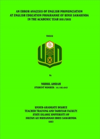 XMLNurul Amrah, 2023. “An error analysis of English pronunciation at the English Education Study Programm of UINSI Samarinda in the academic year 2021/2022”. S1 Thesis, Study of English Education Programm, Tarbiyah and Teacher Training Faculty, State Islamic University of Sultan Aji Muhammad Idris Samarinda. This research is under the guidance of Dr. Umar Fauzan, M.Pd., as advisor I and Widya Noviana Noor, M.Pd., as advisor II.
