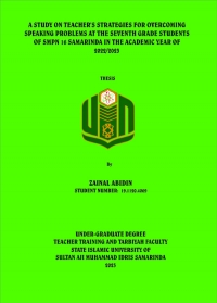 XMLZainal Abidin. 2023. “A Study on Teacher’s Strategies for Overcoming Speaking Problems at the Seventh Grade Students of SMPN 16 Samarinda in the Academic Year of 2022/2023” Thesis, English Education Department, Teacher Training and Education Faculty, Sultan Aji Muhammad Idris State Islamic University of Samarinda. This research is under the guidance of Mrs. Rostanti Toba, M.Pd as the first advisor, and Mrs. Nadia, M.Pd.,M.TESOL as the second advisor.