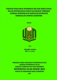 Taufiqur Rahman, 2023. “Strategi Pemasaran Pendidikan Melalui Media Sosial Dalam Meningkatkan Minat Masyarakat Terhadap Lembaga Pendidikan di Madrasah Ibtidaiyah Darussalam Sempaja Samarinda”. Skripsi, Program Studi Manajemen Pendidikan Islam, Jurusan Pendidikan Islam, Fakultas Tarbiyah dan Ilmu Keguruan, Universitas Islam Negeri Sultan Aji Muhammad Idris (UINSI) Samarinda, penelitian ini dibimbing oleh Dr. Siti Julaiha, S.Ag, M.Pd selaku Pembimbing I dan Saipul Hadi, M.Pd.I selaku Pembimbing II.