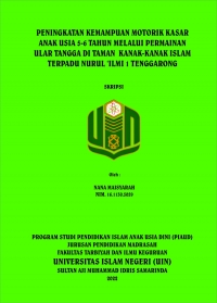 XMLNana Maisyarah, 2022. Peningkatan Kemampuan Motorik Kasar Anak Usia 5-6 Tahun melalui permainan Ular Tangga di Taman Kanak -Kanak Islam Terpadu Nurul ‘Ilmi 1 Tenggarong. Skripsi, Program Studi Pendidikan Islam Anak Usia Dini, Jurusan Pendidikan Madrasah, Fakultas Tarbiyah dan Ilmu Keguruan, Universitas Islam Negeri Sultan Aji Muhammad Idris Samarinda. Penelitian ini dibimbing oleh Ibu Dr.Hj.Robingatin.,M.Ag sebagai dosen pembimbing I dan Ibu Amalia Nur Aini.,M.Pd. sebagai dosen pembimbing II.