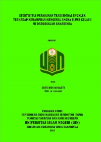 XMLDesy Dwi Minarti, 2023. “Efektivitas Permainan Tradisional Engklek Terhadap Kemampuan Mengenal Angka Siswa Kelas I MI Darussalam Samarinda”. Skripsi, Program Studi Pendidikan Guru Madrasah Ibtidaiyah, Jurusan Pendidikan Madrasah, Fakultas Tarbiyah Dan Ilmu Keguruan, Universitas Islam Negeri (UIN) Sultan Aji Muhammad Idris Samarinda. Penelitian ini dibimbing oleh Bapak Abdul Razak, M.Pd selaku pembimbing I dan Ibu Nurwati M.Pd selaku pembimbing II .