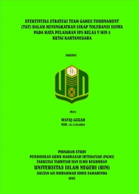 Wafiq Azizah, 2023. “Efektivitas Strategi Team Games Tournament (TGT) Dalam Meningkatkan Sikap Toleransi Siswa Pada Mata Pelajaran IPS Kelas V MIN 2 Kutai Kartanegara”. Skripsi Program Studi Pendidikan Guru Madrasah Ibtidaiyah, Jurusan Pendidikan Madrasah, Fakultas Tarbiyah dan Ilmu Keguruan, Universitas Islam Negeri Sultan Aji Muhammad Idris Samarinda. Penelitian ini dibimbing oleh Ibu Lina Revilla Malik, M. Si selaku dosen pembimbing I dan Bapak Wildan Saugi, M. Pd selaku dosen pembimbing II.
