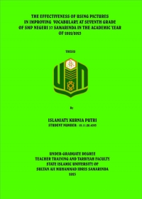XMLIslamiaty Kurnia Putri, 2023 “The Effectiveness of Using Pictures in Improving Vocabulary at Seventh Grade of SMP Negeri 37 Samarinda”. Thesis, Language Education Department, Teacher Training and Education Faculty, State Islamic University Sultan Aji Muhammad Idris Samarinda. This research was supervised by Mr. Bahrani, M.Pd as the first supervisor and Miss. Nadia Sya'ya, M.Pd., M.TESOL as the second supervisor.