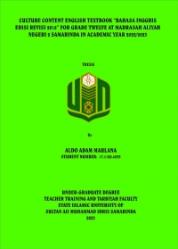 XMLAldo Adam Maulana, 2023. “Culture Content English Textbook “Bahasa Inggris Edisi Revisi 2018” for Grade Twelve at Madrasah Aliyah Negeri 2 Samarinda in Academic Year 2022/2023”. Thesis, English Education Department, Teacher Training and Tarbiyah Faculty, State Islamic University (UIN) Sultan Aji Muhammad Idris Samarinda. This research was guided by Mr. Dr. Umar Fauzan, M. Pd. as the first supervisor, and Mrs. Dini Irawati, M. Pd. as the second supervisor.