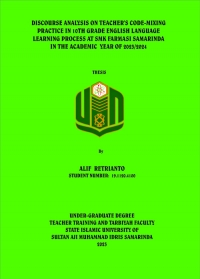 XMLAlif Retrianto, 2023. “Discourse Analysis on Teacher’s Code-Mixing Practice in 10th Grade English Language Learning Process At SMK Farmasi Samarinda in the Academic Year of 2023/2024”. Thesis. English Education Department, Teacher Training and Tarbiyah Faculty, State Islamic University Sultan Aji Muhammad Idris Samarinda. This research was supervised by Ms. Dina Destari, S. S, M. Pd as the first advisor and Ms. Anis Komariah, M. Pd as the second advisor.