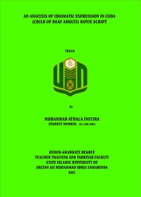 XMLMuhammad Athala Insyira, 2023. “An Analysis of Idiomatic Expression in CODA (Child of Deaf Adult) Movie Script. Undergraduate Degree. Thesis, English Language Education Study Programme, Language Education Department, Teacher Training and Education Faculty, Sultan Aji Muhammad Idris State Islamic University Samarinda. This research is under guidance of Dina Destari, S.S, M.Pd and Dini Irawati, M.Pd.