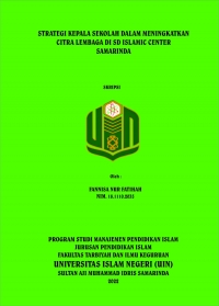 XMLFannisa Nur Fatihah, “Strategi Kepala Sekolah dalam Meningkatkan Citra Lembaga di SD Islamic Center Samarinda”, 2022. Skripsi. Program Studi Manajemen Pendidikan Islam (MPI), Jurusan Pendidikan Islam, Fakultas Tarbiyah dan Ilmu Keguruan (FTIK), Universitas Islam Negeri Sultan Aji Muhammad Idris (UIN SI) Samarinda. Penelitian ini dibimbing oleh bapak Prof. Dr. H. Mukhamad Ilyasin, M. Pd dan bapak Dr. Akhmad Muadin, M. Pd.