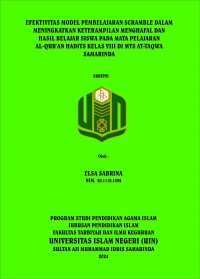 XMLElsa Sabrina, 2024. “Efektivitas Model Pembelajaran Scramble Dalam Meningkatkan Keterampilan Menghafal dan Hasil Belajar Siswa Pada Mata Pelajaran Al-Qur’an Hadits Kelas VIII Di MTs At-Taqwa Samarinda”. Skripsi, Jurusan Pendidikan Agama Islam Fakultas Tarbiyah dan Ilmu Keguruan Universitas Islam Negeri Sultan Aji Muhamad Idris Samarinda. Program Sarjana S-1. Penelitian ini dibimbing oleh Dr. Wahdatun Nisa, M.A sebagai dosen pembimbing I dan Abdul Razak, M.Pd sebagai dosen pembimbing II. Penelitian ini dilakukan dilatar belakangi oleh rendahnya keterampilan menghafal dan hasil belajar siswa kelas VIII pada mata pelajaran Al-Qur’an Hadits di MTs At-Taqwa Samarinda. hampir 60% materi Al-Qur’an Hadits berisi dalil-dalil oleh karena itu, keterampilan menghafal sangat dibutuhkan sebab apabila keterampilan menghafal siswa rendah maka akan memberikan dampak pada hasil belajar yang rendah pula. Dari data hasil belajar siswa pada mata pelajaran Al-Qur’an Hadits menunjukkan bahwa lebih dari 50% nilai akhir semester ganjil siswa kelas VIII masih berada di bawah KKM. Permasalahan ini disebabkan oleh beberapa hal, salah satunya adalah kurangnya antusias siswa dalam mengikuti pembelajaran sebab model pembelajaran yang digunakan oleh guru kurang bervariatif dan inovatif selain itu pembelajaran cenderung hanya berpusat pada guru sehingga pembelajaran terlihat monoton dan membosankan. Tujuan penelitian ini ialah untuk mengetahui efektivitas model pembelajaran scramble dalam meningkatkan keterampilan menghafal dan hasil belajar siswa pada mata elajaran Al-Qur’an Hadits kelas VIII di MTs At-Taqwa Samarinda. Penelitian ini menggunakan jenis penelitian kuantitatif dengan desain penelitian quasi experimental design. Populasi penelitian ini adalah seluruh siswa-siswi kelas VIII MTs At-Taqwa Samarinda sejumlah 48 siswa. Adapun teknik pengambilan sempel menggunakan sampling jenuh dengan begitu sampel pada penelitian ini berjumlah 48 siswa dari kelas VIII 1 sebagai kelas kontrol dan kelas VIII 2 sebagai kelas eksperimen. Teknik pengumpulan data yang digunakan ialah angket, observasi, tes, dan dokumentasi. Uji keabsahan data menggunakan uji validitas dan reliabilitas. Analisi data yang digunakan dalam penelitian ini adalah menggunakan uji MANOVA dengan terlebih dahulu melakukan uji prasyarat normalitas dan homogenitas. Hasil penelitian menunjukkan bahwa model pembelajaran scramble efektif dalam meningkatkan keterampilan menghafal pada mata pelajaran Al-Qur’an Hadits kelas VIII, model pembelajaran scramble efektif dalam meningkatkan hasil belajar pada mata pelajaran Al-Qur’an Hadits kelas VIII, model pembelajaran scramble efektif dalam meningkatkan keterampilan menghafal dan hasil belajar pada mata pelajaran Al-Qur’an Hadits kelas VIII MTs At-Taqwa Samarinda. Dengan hasil signifikansi yang diperoleh ialah kurang dari 0,05 yaitu 0,000 < 0,05 maka ditolak dan diterima sehingga dapat disimpulkan bahwa model pembelajaran scramble sangat efektif dalam meningkatkan keterampilan menghafal dan hasil belajar siswa pada mata pelajaran Al-Qur’an Hadits kelas VIII.