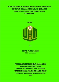 XMLSekar Pandan Arum, 2024. “Strategi Guru Al-Qur’an Hadits Dalam Mengatasi Kesulitan Belajar Membaca Al-Qur’an di Madrasah Tsanawiyah Nurul Islam Samarinda”. Skripsi, Jurusan Pendidikan Islam Program Studi Pendidikan Agama Islam Fakultas Tarbiyah dan Ilmu Keguruan Universitas Islam Negeri Sultan Aji Muhammad Idris Samarinda. Penelitian ini dibimbing oleh Dra. Etty Nurbayani, M.Pd selaku dosen pembimbing 1 dan Rega Armella, M.Pd selaku dosen pembimbing II. Penelitian ini dilatar belakangi oleh urgensi pentingnya Al-Qur'an dalam konteks kehidupan manusia, terutama bagi umat Muslim, yang mendorong partisipasi aktif dalam aktivitas membaca Al-Qur'an. Meskipun demikian, sebagian individu, termasuk siswa di MTS Nurul Islam Samarinda, menghadapi kesulitan dalam membaca Al-Qur'an. Oleh karena itu, diperlukan pendekatan pembelajaran yang inovatif, mengingat Al-Qur'an dianggap sebagai panduan hidup bagi umat Muslim untuk mencapai keselamatan dunia dan akhirat. Penelitian ini bertujuan untuk: 1) mengidentifikasi tantangan yang dihadapi siswa dalam membaca Al- Qur'an terkait dengan makhraj dan ilmu tajwid di MTs Nurul Islam Samarinda, 2) mengevaluasi strategi guru Al-Qur'an dan Hadis dalam mengatasi kesulitan siswa membaca Al-Qur'an di MTs Nurul Islam Samarinda, dan 3) menganalisis faktor- faktor pendukung dan penghambat dalam proses pembelajaran membaca Al-Qur'an di MTs Nurul Islam Samarinda. Jenis penelitian yang digunakan adalah pendekatan kualitatif, dengan fokus pada guru Al-Qur’an dan Hadits serta anggota sekolah yang terlibat dalam merencanakan strategi untuk mengatasi kesulitan membaca Al-Qur’an. Metode penelitian yang digunakan adalah deskriptif kualitatif. Sumber data meliputi observasi, wawancara, dan dokumentasi. Analisis data mengikuti model interaktif yang diajukan oleh Miles dan Huberman, melibatkan pengumpulan data, kondensasi data, penyajian data, dan penarikan kesimpulan. Peneliti membahas berbagai strategi yang digunakan untuk mengatasi kesulitan belajar membaca Al- Qur’an di MTS Nurul Islam Samarinda. Berdasarkan hasil penelitian bahwa Strategi Guru Al-Qur'an Hadits dalam Mengatasi Kesulitan Belajar Membaca Al-Qur'an siswa yaitu, tajwid dalam hal penyebutan bacaan upaya yang dilakukan oleh guru Al-Qur'an Hadits yaitu dengan cara mengulang-ulang bacaan Al-Qur'an serta mengajarkan cara penyebutan yang baik dan benar.yang kedua mengenai panjang pendeknya yang dimana upaya yang dilakukan guru Al-Qur'an Hadits dengan melakukan bimbingan khusus kepada peserta didik dan mengadakan tes membaca Al-Qur'an kepada siswa. faktor pendukung yaitu, sarana dan prasarana yang memadai dan kebijakan sekolah yang mendukung dan faktor penghambat yaitu, kurangnya kemampuan dasar, motivasi siswa, serta waktu pembelajaran yang terbatas.