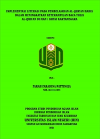 XMLFarah Faradina Pattinaya, 2024 “Implementasi Literasi Pada Pembelajaran Al-Qur’an Hadis Dalam Meningkatkan Keterampilan Baca Tulis Al-Qur’an Di MAN 1 Kutai Kartanegara”. Skripsi Jurusan Pendidikan Islam. Program Studi Pendidikan Agama Islam. Fakultas Tarbiyah dan Ilmu Keguruan. Universitas Islam Negeri Sultan Aji Muhammad Idris Samarinda. Penelitian ini dibimbing oleh Bapak Prof. Dr. Zamroni, M.Pd selaku dosen pembimbing I dan Bapak Muhammad Khairul Rijal, M.Pd selaku dosen pembimbing II. Penelitian ini dilatar belakangi oleh program sekolah melalui guru Al-Qur’an Hadis yang betujuan untuk meningkatkan prestasi keagamaan, meningkatkan intensitas baca tulis Al-Qur’an peserta didik dan mengatasi rendahnya minat baca tulis Al-Qur’an. Literasi baca tulis Al-Qur’an dilaksanakan selama 15 menit sebelum Pembelajaran Al-Qur’an Hadis dimulai. Dari observasi ditemukan bahwa minat baca tulis Al-Qur’an peserta didik tergolong rendah. Dari beberapa paparan tersebut maka penelitian ini bertujuan untuk mengetahui proses implementasi literasi pada pembelajaran Al-Qur’an Hadis dalam meningkatkan keterampilan baca tulis Al-Qur’an di MAN 1 Kutai Kartanegara. Metode Penelitian yang digunakan adalah deskriptif kualitatif. Teknik pengumpulan data yang digunakan ialah observasi, wawancara, dokumentasi, serta teknik analisis yang digunakan yaitu pengumpulan data, kondensasi data, penyajian data, dan penarikan kesimpulan. Berdasarkan hasil penelitian yang di dapat dalam proses implementasi literasi pada Pembelajaran Al-Qur’an Hadis dalam meningkatkan keterampilan baca tulis Al-Qur’an di MAN 1 Kutai Kartanegara dilakukan 3 tahapan, yaitu perencanaan berupa RPP, Metode dan media yang dirancang sesuai dengan pembelajaran, pelaksanaan melalui kegiatan membaca dan menulis Al-Qur’an dan Hadis selama 15 menit sebagai pengantar sebelum masuk ke materi Pembelajaran, dan evaluasi yang dilakukan berupa pemberian reward dan punishment kepada peserta didik. Serta faktor pendukung dalam proses implementasi literasi baca tulis Al-Qur’an Hadis di MAN 1 Kutai Kartanegara seperti menyediakan fasilitas dalam proses pelaksanaan dan dorongan dari lingkungan sekolah. Adapun penghambat dalam proses implementasi literasi baca tulis Al-Qur’an Hadis di MAN 1 Kutai Kartanegara seperti kurangnya kesadaran diri peserta didik dalam literasi dan kurangya motivasi. Serta adanya faktor penghambat eksternal seperti lingkungan yang kurang mendukung dan kurangnya dukungan dari keluarga.