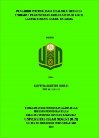 Alifviya Agustin Juhari, 2024 “Internalisasi Nilai-Nilai Religius Terhadap Pembentukan Akhlak Siswa di CLC 26 Ladang Kimanis, Sabah, Malaysia” Skripsi, Jurusan Pendidikan Islam Fakultas Tarbiyah dan Ilmu Keguruan Universitas Islam Negeri (UIN) Sultan Aji Muhammad Idris Samarinda. Penelitian ini dibimbing oleh Ynita Noor Azizah, M.Pd.I dan Dr. Kautsar Eka Wardana, M.Pd. Penelitian ini dilatar belakangi oleh kenyataan yang terjadi bahwasanya terlihat adanya proses internalisasi nilai-nilai religius di CLC 26 Ladang Kimanis, Sabah, Malaysia. Yaitu pada observasi awal peneliti melihat adanya proses internalisasi nilai-nilai religius berupa pembiasaan yang kerap kali dilakukan untuk membentuk akhlak siswa ialah membaca do’a sebelum dan sesudah belajar, menjalankan ibadah sholat dan mengaji, peringatan hari besar Islam (PHBI) serta sikap toleransi antar agama. Jadi, tujuan yang ingin dicapai dalam penelitian ini adalah untuk mengetahui pengaruh dari internalisasi nilai-nilai religius terhadap pembentukan akhlak siswa di CLC 26 Ladang Kimanis, Sabah, Malaysia. Penelitian ini menggunakan jenis penelitian Kuantitatif. Penelitian ini dilakukan di CLC 26 Ladang Kimanis, Sabah, Malaysia. Populasi dalam penelitian ini seluruh siswa SD CLC 26 Ladang Kimanis yang beragama Islam sebanyak 52 siswa. Teknik pengumpulan data yang digunakan adalah observasi, angket dan dokumentasi. Penelitian ini menggunakan uji validitas dan reliabilitas untuk menguji keabsahan data. Adapun teknik analisis yang dilakukan yaitu uji normalitas dan uji linieritas sebagai uji prasyarat, dilanjutkan pengujian hipotesis menggunakan uji regresi linier sederhana, uji koefisien korelasi product moment uji-t dan uji koefisien determinasi. Hasil dari penelitian ini ditunjukkan dalam uji regresi linier sederhana dengan nilai konstanta persamaan (a) sebesar 16,391 dan koefisien regresi (b) sebesar 0,839 bertanda positif menunjukkan bahwa internalisasi nilai-nilai religius mempunyai pengaruh positif terhadap pembentukan akhlak siswa. Hubungan antara internalisasi nilai-nilai religius dengan pembentukan akhlak siswa dapat dilihat dari hasil uji korelasi product moment yang dilakukan yang menunjukan nilai pearson correlation atau diperoleh thitung>rtabel yaitu 0,732 > 0,279 serta berada pada interpretasi 0,60-0,799, dalam hal ini menyatakan bahwa H0 ditolak dan Ha diterima, yang berarti memiliki hubungan yang kuat. Dari hasil uji-t menunjukkan nilai thitung sebesar 7,598 > ttabel 2,007, dan nilai signifikansi 0,000 < 0,05, karena thitung>ttabel dan nilai sig. < 0,05 maka H0 ditolak dan Ha diterima, yang berarti terdapat pengaruh. Maka internalisasi nilai-nilai religius mempunyai pengaruh yang signifikan terhadap pembentukan akhlak siswa. Dari hasil uji koefisien determinasi diketahui nilai R2 = 0,536 yang berarti variabel nilai-nilai religius mempunyai pengaruh sebesar 53,6% terhadap variabel akhlak dan sisanya sebesar 46,4% dipengaruhi oleh faktor lain yang tidak diteliti dalam penelitian ini.