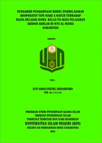 XMLSiti Kholifatul Munawaro, 2024 “Pengaruh Penggunaan Model Pembelajaran Kooperatif Tipe Make A Match Terhadap Hasil Belajar Siswa Kelas VII Mata Pelajaran Akidah Akhlak di MTs Al-Misra Samarinda”. Skripsi Program Studi Pendidikan Agama Islam, Jurusan Pendidikan Islam, Fakultas Tarbiyah dan Ilmu Keguruan, Universitas Islam Negeri Sultan Aji Muhammad Idris (UINSI) Samarinda. Dibawah bimbingan Ibu Lismina, S. Ag, M. Pd.I sebagai pembimbing I dan Ibu Sunanik, M.Pd.I sebagai pembimbing II. Penelitian ini dilatarbelakangi karena rendahnya hasil belajar siswa dalam pembelajaran Akidah Akhlak yang hanya mencapai 44% yang mendapat nilai tuntas dan 56% mendapat nilai tidak tuntas dari 129 siswa kelas VII, kurangnya minat siswa dalam mengikuti pembelajaran dan siswa kurang terlibat dalam proses pembelajaran, serta model pembelajaran yang digunakan kurang bervariatif dan monoton hanya menggunakan model pembelajaran konvensional atau ceramah. Model pembelajaran kooperatif tipe Make A Match ini menjadi salah satu model pembelajaran yang dapat digunakan untuk meningkatkan hasil belajar siswa. Oleh karena itu, penelitian ini bertujuan untuk mengetahui pengaruh penggunaan model pembelajaran kooperatif tipe Make a Match terhadap hasil belajar siswa kelas VII pada mata pelajaran Akidah Akhlak di MTs Al-Misra Samarinda. Penelitian ini merupakan jenis penelitian kuantitatif lapangan dengan menggunakan pendekatan quasi eksperimen. Pengambilan sampel dilakukan dengan teknik purposive sampling karena peneliti menetapkan kriteria tertentu untuk dijadikan sampel. Sampel yang diambil berjumlah 65 orang siswa. Dimana peneliti mengambil 2 sampel kelas yaitu kelas VII B sebagai kelas kontrol dan Kelas VII D sebagai kelas eksperimen menggunakan model pembelajaran kooperatif tipe Make A Match. Pengumpulan data dilakukan dengan observasi, tes hasil belajar pre-test dan post-test sebanyak 20 butir soal, dan dokumentasi. Teknik analisis data menggunakan uji normalitas, uji homogenitas, dan uji hipotesis menggunakan uji independent simple t test. Berdasarkan hasil penelitian dan analisis data diperoleh hasil pengujian hipotesis menggunakan uji independent simple t test, diperoleh nilai thitung > ttabel yaitu 2,193 > 1,998, artinya Ha diterima dan Ho ditolak. Sehingga dapat diartikan adanya pengaruh penggunaan model pembelajaran kooperatif tipe Make A Match terhadap hasil belajar siswa kelas VII pada mata pelajaran Akidah Akhlak di MTs Al-Misra Samarinda.