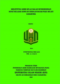 Fitrotunnisa Nur Laili, 2022. “Kreativitas Guru Kelas Dalam Menumbuhkan Minat Belajar Siswa di Sekolah Dasar Plus Melati Samarinda”, Skripsi, Program Studi Pendidikan Guru Madrasah Ibtidaiyah, Jurusan Pendidikan Madrasah, Fakultas Tarbiyah dan Ilmu Keguruan Universitas Islam Negeri Sultan Aji Muhammad Idris Samarinda. Penelitian ini dibimbing oleh Ibu Lina Revilla Malik, M.Si, selaku pembimbing I dan Ibu Zakiyah Ulfah, M.Pd, selaku pembimbing II.