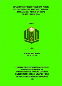 XMLMuhammad Habib, 2024, Implementasi Proyek Penguatan Profil Pelajar Pancasila dan Profil Pelajar Rahmatan Lil `Alamin di Madrasah Aliyah Negeri 2 Samarinda, Skripsi, Program Studi Pendidikan Agama Islam Jurusan Pendidikan Islam Fakultas Tarbiyah dan Ilmu Keguruan Universitas Islam Negeri Sultan Aji Muhammad Idris Samarinda di bawah bimbingan bapak Dr. Suratman, M. Pd selaku pembimbing satu dan bapak Dr. H. Ahmad Ridani, M. M selaku dosen pembimbing dua. Penelitian ini dilatar belakangi oleh sikap moderasi beragama yang merupakan salah satu sikap yang saat ini perlu diperhatikan. Hal ini disebabkan karena sikap moderasi beragama ini sangat diperlukan oleh siswa didalam kehidupannya sehari-hari. Pertumbuhan sikap moderasi beragama yang baik akan membentuk kepribadian siswa yang baik dan akan memberikan manfaat bagi lingkungan sekitarnya, baik itu disekolah maupun dilingkungan masyarakat. Salah satu usaha sekolah dalam membentuk dan meningkatkan sikap modersi beragama itu adalah melalui Proyek Penguatan Profil Pelajar Pancasila Dan Profil Pelajar Rahmatan Lil `Alamin. Penelitian ini bertujuan untuk memperoleh pemahaman tentang implementasi Proyek Penguatan Profil Pelajar Pancasila Dan Profil Pelajar Rahmatan Lil `Alamin di Madrasah Aliyah Negeri 2 Samarinda dengan fokus utama pada sikap moderasi beragama, faktor pendukung dan penghambatnya , serta solusi dalam mengatasi hambatanya. Metode yang digunakan dalam penelitian ini adalah deskriptif kualitatif. Pendekatan ini melibatkan pendekatan teknik observasi, wawancara, dan dokumentasi sebagai metode pengumpulan data. Informan didalam penelitian ini adalah kepala Madrasah, waka kurikulum, koordinator dan fasilitator P5 P2RA serta siswa/i Madrsah Aliyah Negeri 2 Samarinda. Teknik analisis data menggunakan kondensasi data, penyajian data, dan penarikan kesimpulan. Uji keabsahan data menggunakan triangulasi sumber dan triangulasi teknik. Hasil yang diperoleh dalam penelitian ini adalah Proyek Penguatan Profil Pelajar Pancasila Dan Profil Pelajar Rahmatan Lil `Alamin dalam menumbuhkan sikap moderasi beragama siswa dilaksanakan dengan perencanaan membentuk koordinator dan fasilitator, kemudian pelaksanaannya fasilitator mendampingi siswa dalam menentukan tema dan proyek yang mereka inginkan, kemudian siswa membuat dan mempersiapkan proyek dan menampikan hasil proyeknya didalam pegelaran karya, selama pelaksanaan siswa mencerminkan sikap moderasi beragama berupa Syura, Tawassuth, I`tidal, Tasamuh, Musawah dan Tawazun. Evaluasi fasilitator dan siswa membuat laporan kegiatan P5 P2RA yang kemudian diserahkan ke Koordinator P5 P2RA dan memasukkan nilai tersebut kedalam rapor. Faktor pendukung adalah komitmen warga madrasah serta sarana dan prasarana yang memadai. Faktor penghambat yakni masih terjadi miskomunikasi guru fasilitator dalam memberikan pendampingan kepada siswa, dan solusi adalah meningkatkan pelatihan bagi guru-guru dan meningkatkan koordinasi antara siswa dan guru.