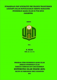M. Helmi, 2024. "Penggunaan Chat Generative Pre-Trained Transformer (ChatGPT) dalam Penyelesaian Skripsi Mahasiswa Pendidikan Agama Islam di FTIK UINSI Samarinda". Skripsi, Program Studi Pendidikan Agama Islam, Fakultas Tarbiyah dan Ilmu Keguruan, Universitas Islam Negeri Sultan Aji Muhammad Idris Samarinda. Penelitian ini dibimbing oleh Dr. Bahrani M.Pd dan Maulida Ulfa Hidayah, M.Pd. Penelitian ini dilatar belakangi kenyataan penggunaan ChatGPT sebagai AI, bahasa yang banyak digunakan dalam penyelesaian tugas mahasiswa, observasi awal yang dilakukan peneliti dengan melihat presentasi kelulusan mahasiswa yang hampir sama pada angkatan 2018 dan 2019 dan banyaknnya mahasiswa 2021 telah melaksanakan seminar proposal. Sedangkan tujuan penelitian ini untuk mengetahui dampak ChatGPT dalam Penyelesaian Skripsi Mahasiswa PAI di FTIK UINSI Samarinda serta mengetahui faktor negatif dan positif ChatGPT Dalam Penyelesaian Skripsi Mahasiswa PAI FTIK UINSI Samarinda. Penelitian ini menggunakan metode kualitatif dengan pendekatan studi kasus. Data dikumpulkan dari dosen dan mahasiswa PAI. Teknik pengambilan sampel menggunakan snowball sampling sedangkan Teknik pengumpulan data meliputi observasi, wawancara, dan dokumentasi. Untuk memastikan keabsahan data, dilakukan triangulasi sumber dan teknik. Proses analisis data melalui penyederhanaan data, penyajian hasil, dan penarikan simpulan dengan menggunakan Teori Miles and Huberman. Hasil penelitian ini menunjukkan bahwa Penggunaan ChatGPT dapat membantu mahasiswa FTIK UINSI Samarinda dalam menyelesaikan tugas akademik, khususnya skripsi, dengan memfasilitasi pencarian ide, informasi, meningkatkan kualitas konten dan parafrase teks. Selain itu, ChatGPT juga dianggap mampu memotivasi mahasiswa, serta meningkatkan efisiensi dalam proses penulisan, namun tetap bergantung pada kemampuan mahasiswa dalam mengolah informasi yang dihasilkan. Beberapa dosen mengakui bahwa ChatGPT membantu mahasiswa, tetapi tetap menekankan pentingnya keterlibatan aktif mahasiswa dalam proses revisi dan pengembangan skripsi. Kecepatan penyelesaian skripsi tetap bergantung pada inisiatif mahasiswa dalam merevisi dan memperbaiki tulisannya. Meskipun ChatGPT memiliki beberapa kelebihan, tetap ada faktor negatif terkait penggunaannya seperti kualitas informasi yang dihasilkan oleh ChatGPT tidak relevan dengan artikel ilmiah, menurunkan kemampuan berfikir kritis serta kurang relevan saat digunakan untuk mencari informasi yang membutuhkan kreativitas dan empati.