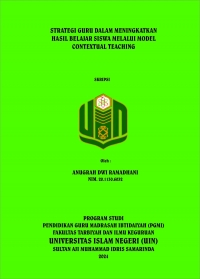 Anugrah Dwi Ramadhani, 2024. “Strategi Guru Dalam Meningkatkan Hasil Belajar Siswa Melalui Model Contextual Teaching”.Skripsi, Program Studi Pendidikan Guru Madrasah Ibtidaiyah, Jurusan Pendidikan Madrasah, Fakultas Tarbiyah dan Ilmu Keguruan, Universitas Islam Negeri Sultan Aji Muhammad Idris Samarinda. Penelitian ini dibimbing oleh Gianto,M.Pd selaku pembimbing I dan Nurwati,M.Pd selaku pembimbing II. Latar belakang penelitian ini membahas penerapan strategi guru mata pelajaran PPKN dalam meningkatkan hasil belajar siswa yang pertama ialah sesuai observasi saya di MI MA’ARIF NU 01 Samarinda dari banyak siswa yang lebih paham dibandingkan dengan siswa yang kurang pemahamannya pada mata pelajaran PPKn, ditandai dengan hasil belajar siswa yang tinggi serta kecakapan siswa dalam proses pembelajaran dan keberhasilan guru dalam mendidik kelas tersebut yang kedua ialah strategi yang digunakan oleh guru PPKN sehingga berhasil dalam memerapkan strategi yang mengakibatkan hasil belajar siswa tinggi. Tujuan dari penelitian ini adalah pertama untuk mengetahui strategi guru dalam meningkatkan hasil belajar siswa melalui model Contextual Teaching Learning pada mata pelajaran PPKN di MI Maarif NU 01 Samarinda. Kedua yaitu untuk mengetahui faktor pendukung dan penghambat strategi guru dalam meningkatkan hasil belajar siswa. Metode penelitian yang digunakan penelitian ini adalah pendekatan kualitatif yaitu mendeksripsikan hasil penelitian dalam bentuk narasi serta kata-kata. Teknik pengumpulan data menggunakan wawancara, observasi dan dokumentasi. Informan dalam penelitian ini adalah kepala sekolah dan guru mata pelajaran PPKN. Teknik analis data yang digunakan adalah triangulasi data yaitu berupa penyajian data dan verifikasi atau kesimpulan. Berdasarkan hasil penelitian, strategi yang digunakan oleh guru dalam meningkatkan hasil belajar siswa melalui model contextual teaching learning adalah dengan menggunakan strategi pembelajaran ekspositori penyampaian materi berupa ceramah dan secara verbal dimana kendali terbesar disini adalah guru. Selanjutnya faktor pendukung dan penghambat strategi yaitu dari guru itu sendiri seperti kedisiplinan guru saat masuk pembelajaran,selanjutnya dari siswa seperti siswa yang mengikuti program tahfidz dimana program ini menggunakan jadwal mata pelajaran dan ketika selesai pembelajaran yang mengakibatkan siswa yang mengikuti program tahfidz ketinggalan dalam pembelajaran.