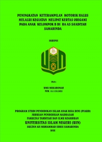 Umu Mukaromah, 2022. Peningkatan Keterampilan Motorik Halus Melalui Kegiatan Melipat Kertas Origami Pada Anak Kelompok B di RA As- Sa’adiyah Samarinda Program Studi Pendidikan Islam Anak Usia Dini, Jurusan Pendidikan Madrasah Fakultas Tarbiyah dan Ilmu Keguruan, Universitas Negeri Sultan Aji Muhammad Idris Samarinda. Penelitian ini dibimbing oleh Ibu Marniati Kadir, M.Pd selaku pembimbing I dan Ibu Zakiyah Ulfah, M.Pd selaku pembimbing II.