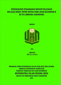 XMLArbayah, 2024, “Peningkatan Pemahaman Konsep Bilangan Melalui Media Tutup Botol Pada Anak Kelompok B di TK Labbaika Samarinda” Program Studi Pendidikan Islam Anak Usia Dini, Jurusan Pendidikan Madrasah Universitas Islam Negeri Sultan Aji Muhammad Idris (UINSI) Samarinda. Penelitian ini dibimbing oleh ibu Marniati Kadir, M.Pd dan ibu Sunanik, M.Pd.I. Latar belakang penelitian ini diawali dengan rendahnya kemampun pemahaman konsep bilangan pada anak, pada aspek menuliskan lambang bilangan 1-20 sebesar 76,4%, mencocokkan lambang bilangan dengan jumlah bilangan sebesar 64,7% dan menggunakan alat main untuk membuat angka sebesar 64,7%. oleh karena itu untuk mengoptimalkan sebuah pembelajaran dan untuk meningkatkan kognitif anak harus menggunakan media yang menarik seperti tutup botol. Sesuai dengan penelitian terdahulu yang menyatakan media tutup botol merupakan media konkrit. Media tutup botol juga memiliki kelebihan karena media ini sangat praktis, mudah didapatkan, dan beragam warnanya sehingga menarik bagi anak-anak yang menggunakannya dan dapat membangkitkan semangat anak sehingga anak akan termotivasi untuk belajar. Tujuan dari penelitian ini adalah untuk mengetahui peningkatan pemahaman konsep bilangan melalui media tutup botol pada anak kelompok B di TK Labbaika Samarinda. Penelitian ini merupakan jenis penelitian tindakan kelas yang dilakukan secara kolaboratif peneliti dan guru kelas. Penelitian dilaksanakan dalam 2 siklus. Masing-masing siklus dilaksanakan dalam 2 kali pertemuan. Subjek yang diteliti adalah anak kelompok B kelas Al-Hakim yang berjumlah 17 anak laki-laki. Tehnik pengumpulan data dalam penelitian ini adalah observasi dan dokumentasi. Tehnik analisis data menggunakan deskriptif kualitatif dan kuantitatif. Hasil penelitian ini menunjukan bahwa pengamatan aktivitas guru dalam meningkatan pemahaman konsep bilangan pada anak melalui media tutup botol pada siklus I pertemuan I mencapai nilai rata-rata 3,12% dangan kriteria baik, sedangkan pada pertemuan ke dua meningkat menjadi 3,31% dengan kriteria baik. Pada siklus II pertemuan I aktivitas guru berhasil mencapai nilai rata-rata 3,56% dengan kriteria sangat baik. Di pertemuan ke II kembali meningkat menjadi 3,68% dengan kreteria sangat baik. Peningkatan kemampuan pemahaman konsep bilangan pada anak melalui media tutup botol dapat dilihat dari observasi yang telah dilakukan, pada kondisi pra siklus pemahaman konsep bilangan pada anak adalah 35,2%. Setelah dilakukan tindakan pada siklus I pertetemuan I meningkat menjadi 52,9%, dan pada pertemuan II kembali meningkat menjadi 76,4%. Pada tindakan siklus II pertemuan I pemahaman konsep bilangan pada anak telah mencapai 82,3% dan pada pertemuan II meningkat menjadi 100%. Dari pelaksanaan tindakan siklus I dan siklus II nilai presentase yang didapatkan sebesar 91,1% yakni telah mencapai kreteria berkembang sangat baik. Dari hasil yang diperoleh dalam penelitian ini membuktikan bahwa melalui media tutup botol dapat meningkatkan pemahaman konsep bilangan pada anak kelompok B di TK Labbaika Samarinda.