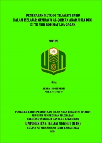 XMLArrum Sholekhah, 2024, “Penerapan Metode Tilawati PAUD Dalam Belajar Membaca Al-Qur’an Anak Usia Dini di TK Nur Rohmat Loa Gagak” Program Studi Pendidikan Islam Anak Usia Dini, jurusan Pendidikan Madrasah, Fakultas Tarbiyah dan Ilmu Keguruan, Universitas Islam Negeri Sultan Aji Muhammad Idris (UINSI) Samarinda. Penelitian ini dibimbing oleh ibu Dr. Hj. Robingatin,M.Ag dan Ibu Sunanik, M.Pd.I. Latar belakang penelitian ini diawali dengan banyak ditemukan pemuda muslim yang kurang bisa membaca Al-Qur’an sehingga anak-anak di lingkungan sekitar kurang mendapat perhatian dalam hal mengaji saat di rumah, anak mengaji hanya saat di TPA maupun di sekolahan. Berdasarkan observasi penelitian yang dilakukan di TK Nur Rohmat memperoleh gambaran bahwasanya metode tilawati PAUD yang diterapkan kepada anak dalam pembelajaran Al-Qur’an pada implementasinya menggunakan media peraga kartu, peraga kaleder, dan buku tilawati PAUD. Penelitian ini merupakan jenis penelitian kualitatif. Subjek yang diteliti adalah anak kelas B1 yang berjumlah 12 anak. Tehnik pengumpul data dalam penelitian ini adalah observasi, wawancara, dan dokumentasi. Keabsahan data mengunakan teknik triangulasi sumber, triangulasi teknik dan triangulasi waktu. . Tehnik analisis data menggunakan reduksi data, sajian data, penarikan kesimpulan dan verifikasi. Berdasarkan dari Penelitian di lembaga pendidikan di TK Nur Rohmat Loa Gagak Desa Loa Kulu Kota Kec.Loa Kulu, terdapat 2 Pendekatan yaitu pendekatan klasikal individu dan baca simak. serta 2 Teknik dalam pembelajaran membaca Alqur’an menggunakan metode tilawati yaitu Teknik guru membacakan anak mendengarkan, guru membacakan anak menirukan serta guru dan anak membaca bersama – sama. Dengan metode yang digunakan dalam pembelajaran membaca Al- Qur’an anak usia dini di TK Nur Rohmat tersebut Sebagian besar sudah bisa membaca Huruf Hijaiyyah dengan baik dan sesuai makhrojul huruf.