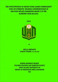 Della Sriyanti, 2024. The Effectiveness of Using TGT (Teams-Games-Tournament) on Students’ Reading Comprehension At SMA Plus Melati Samarinda Grade X in The Academic Year 2023/2024 - Under Graduated Thesis. Supervisor: (1) Rostanti Toba, M. Pd. (2) Anis Komariah, M. Pd. Reading is a process of communication with the condition that the reader must understand what is conveyed by the author in the text. If these conditions are met then communication will occur between the reader and the writer. The objective of the research to find out how significant the effectiveness of Teams-Games-Tournament (TGT) on students’ reading comprehension at SMA Plus Melati grade X in The Academic Year 2023/2024. This research used a quantitative experiment with a quasi-experimental method. The sample used two classes, they were X-1 which consisted of 24 students as the experimental class and the students of X-2 which consisted of 25 students as the control class. The instrument of collecting data used test. From the result of the instrument test, 20 question are valid and the reliable questions were taken. The result of the research is evidenced by the average score of students before and after being given treatment from experimental class of 33.33 to 85.42. Meanwhile, the results of the hypothesis test, the experimental class obtained a tcount of 10.926 and a significance value or Sig. (2-tailed) of 0.000 < 0.05 it can be stated that Hα is accepted and H0 is rejected. Based on the findings, it can be concluded that the effectiveness of using Teams-Games-Tournament (TGT) on students’ reading comprehension of SMA Plus Melati Samarinda Grade X in The Academic Year 2023/2024 has significant results.