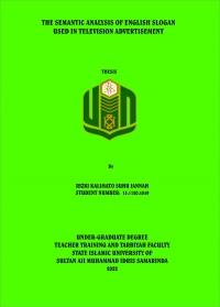 XMLRizki Kalimato Suhu Jannah, 1511204049 “The Semantic Analysis of English Slogan Used in Television Advertisement” Thesis. Teacher training and Tarbiyah Faculty. English Education Department. State Islamic University Sultan Aji Muhammad Idris Samarinda Advisor: Umar Fauzan, M.Pd as the first advisor and Rostanti Toba, M.Pd as the second advisor.