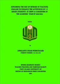 XMLAvrilianti Indah Permitasari. 2024. Exploring the Use of Rewards in Teaching English to Enhance the Activeness of 7th C Grade Students at SMPN 36 Samarinda In The Academic Year of 2023/2024. Undergraduate Thesis, English Language Study Program, Language Education Department, Education and Teacher Training Faculty, Sultan Aji Muhammad Idris State Islamic University Samarinda. This research is conducted under the supervision of Mrs. Rostanti Toba, M.Pd as the first supervisor and Mr. Muhammad Azwar A Paramma, M.Pd as the second supervisor. The background of this research is the success of a teacher in enhancing student activeness during English lessons through the use of rewards. Based on this background, the researcher is inspired in conducting the research about exploring the use of rewards by the teacher. The problems of this study are formulated into three, namely: (1) what kinds of reward are the teacher used to enhance students’ activeness? (2) how does the teacher implement the reward to enhance students’ activeness? and (3) how do the students’ respond when the teacher implements the reward? Therefore, the objectives of this study are: (1) to identify the types of rewards used by teachers to enhance student engagement in learning English, (2) to understand the implementation of these rewards, and (3) to determine students' responses to the use of rewards in English teaching. This research employs a qualitative descriptive method. The subjects of the study are English teachers at SMPN 36 Samarinda who use rewards in teaching and students of class 7C at SMPN 36 Samarinda. Data collection is conducted through observation, interviews, and questionnaire. The findings of this research are as follows: first, the types of rewards used by English teachers are verbal rewards, tangible rewards, and token rewards (points). Second, the implementation of these rewards involves posing questions to students, both orally and in written form, and rewarding students who can answer correctly. Additionally, teachers sometimes appreciate students who submit assignments the fastest by giving them star-shaped sticky notes with their names written on them. The sticky notes given by teachers are collected and stored by students to be used as additional grades at the end of the semester. Third, students' responses to the implementation of rewards are positive. Students find learning more enjoyable and motivating in learning English.