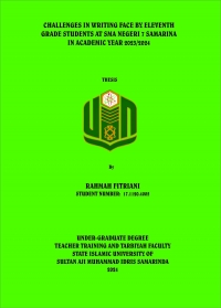 Rahmah Fitriani. 2024. Writing Challenges Faced by Grade Eleventh Students of SMA Negeri` 7 Samarinda. Under Graduate Thesis, Faculty of Teacher Training and Education. Department of English Education. Samarinda State Islamic Institute. This research was supervised by Dina Destari, M.Pd as the first supervisor and Dini Irawati, M.Pd as the second supervisor. The challenge in writing for students is the fear that exists in students, because they feel that their writing looks bad. Writing is one of the four language skills, writing is also considered a form of delivering messages in writing so that people who read it can understand the message to be conveyed by the author. Writing a narrative text is the same as writing a series of stories involving characters from a past event. In this study, the researcher examines what difficulties students face when learning to write narrative texts and what solutions are given to students to understand writing narrative texts.The purpose of this study is to find out students' difficulties in writing narrative texts and to find out students' solutions in writing narrative texts. The method used in this research is Descriptive Qualitativ. In addition, the instruments used in this research are observation, interviews, documentation and student grades. data collection through interview answers, observation results and analysis and analysis during English language learning. The subjects of this research were eleventh grade students of SMA Negeri 7 Samarinda. With 10 students and 2 teachers as respondents. Based on the research results, it can be concluded that students tend to learn faster when the teacher explains the material using the mini games method.mini games method. And also watch movies, or see stories in legends or fiction on youtube. This research shows that by integrating media such as novels, movies, and mini games into teaching methods, students can more easily understand and express their ideas in the form of understand and express their ideas in the form of narrative text. This approach can also increase students' interest and motivation in learning activities, as they can enjoy a more interactive and can enjoy a more interactive and fun learning process.