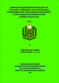 XMLAfrida, Berliana Sela, 2024. Enhancing English Writing Proficiency Via Team Games Tournament: An Action Research On Procedure Texts With Eight-Grade Students At Mts. Darussalam Samarinda In The Academic Year 2024/2025 – Under Graduated Thesis. Supervisor: (1) Rostanti Toba, M. Pd. (2) Nadia, M.Pd., M.TESOL. Writing is the act of expressing thoughts, ideas, and feelings through the written word, allowing individuals to convey their message to a wider audience. Writing is not merely a passive act of recording information but an active process of transforming and shaping ideas into a coherent and structured form. Writing can serve multiple purposes, such as working out ideas, shaping emerging thoughts, reflecting on experiences, communicating with others, and creating aesthetic works. Writing can help a person explain something that is being thought about. The research objective was to identify the enhancement of the Team Games Tournament students‟ writing proficiency of procedure text at MTs. Darussalam Samarinda in the Academic Year 2024/2025. The research used a classroom action research design conducted in two cycles. Each cycle contains four steps: planning, acting, observing, and reflecting. The research subject was eighth-grade students at MTs. Darussalam Samarinda in the academic year 2024/2025. Data were collected in this research through quantitative research, through observation and test to describe the progress of the action. The average score and percentage class were used as a representative central tendency for the enhancing students‟ writing proficiency. These research findings showed that there was an improvement in students' writing proficiency using the Team Games Tournament method, which could be seen from differentiation calculations between the total average score of reflection I and reflection II. In cycle I, the students‟ writing proficiency on procedure text was categorized as low, with an average score of 72,71 and a percentage of the class passing grade of 42,85%. However, some students still need to reach the minimum completeness criteria. In cycle II, the average score of students was 82,82 and the percentage class of passing grade was 85,71%.