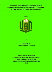 Gita Maulita, 2022. Teachers’ Problematics in Preparing K-13(Curriculum) Lesson Plan for Online Learning of English at MTs. Labbaika Samarinda. Thesis, English Education Department, Teacher Training and Education Faculty, State Islamic University Sultan Aji Muhammad Idris of Samarinda. Supervised by Mrs. Rostanti Toba, M.Pd as the First Advisor, and Mrs. Nadia Sya’ya, M.Pd, M.TESOL as the Second Advisor.