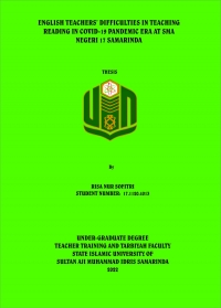 XMLSofitri, Risa Nur. 2022. “English Teachers’ Difficulties in Teaching Reading in Covid-19 Pandemic Era at SMA Negeri 17 Samarinda”. Thesis, English Education Department, Teacher Training and Tarbiyah Faculty, State Islamic University Sultan Aji Muhammad Idris. This research was supervised by Mr. Umar Fauzan, M.Pd as the first supervisor and Mrs. Rostanti Toba, M.Pd as the second supervisor.