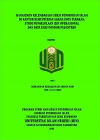 XMLMuhammad Dzulqarnain Abidin Gani, 2022 “Manajemen Kelembagaan Seksi Pendidikan Islam Di Kantor Kementerian Agama Kota Tarakan (Studi Pengelolaan Izin Operasional dan Data Emis Pondok Pesantren)” Skripsi, Program Studi Manajemen Pendidikan Islam Jurusan Pendidikan Islam Fakultas Tarbiyah dan Ilmu Keguruan Universitas Islam Negeri Sultan Aji Muhammad Idris Samarinda, penelitian inidibimbing oleh Dr. Muchammad Eka Mahmud, M.Ag Selaku pembimbing I dan Fathur Rahman, S.Si., M.Si Selaku pembimbing II.