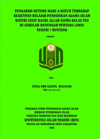 XMLAtika Nur Izzatil Hasanah 2022. “ Pengaruh Metode Make a Match Terhadap Keaktifan Belajar Pendidikan Agama Islam Materi Sifat Rasul Allah Siswa Kelas VIII Di Sekolah Menengah Pertama Negeri 7 Bontang”. Skripsi Program Studi Pendidikan Agama Islam Fakultas Tarbiyah dan Ilmu Keguruan Universitas Islam Negeri (UIN) Sultan Aji Muhammad Idris Samarinda. Penelitian ini dibimbing oleh Marniati Kadir, S.Pd, M.Pd Selaku Pembimbing I dan Muhammad Ridho Muttaqien, M.Pd.I selaku pembimbing II.