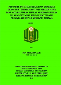 Penelitian ini dilatar belakangi oleh tantangan baru dalam sistem pendidikan di Indonesia saat ini adalah perubahan sistem pembelajaran di seluruh sekolah. Pembelajaran yang semula dilakukan secara tatap muka atau luring, berubah menjadi pembelajaran secara daring atau online, kemudian sistem pembelajaran dikembangkan pelaksanaannya, yaitu secara tatap muka terbatas (PTM Terbatas). Perubahan sistem pembelajaran ini mempengaruhi motivasi belajar siswa. Tingginya motivasi belajar pada siswa juga dipengaruhi oleh fasilitas belajar atau sarana belajar. Kelengkapan fasilitas belajar menjadi hal yang amat penting, karena akan mempengaruhi kelancaran siswa dalam belajar. Motivasi belajar pada siswa dipengaruhi oleh dukungan orang tua. Individu yang mendapatkan dukungan sosial yang positif dari orang tuanya akan lebih termotivasi untuk belajar, karena mereka memiliki keyakinan bahwa dirinya dicintai, dihargai dan diperhatikan. Untuk mengetahui pengaruh dan besarnya pengaruh fasilitas belajar dan dukungan orang tua terhadap motivasi belajar siswa pada mata pelajaran sejarah kebudayaan islam selama pertemuan tatap muka terbatas di Madrasah Aliyah Nuruddin Samboja.