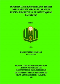 Handiny Azzah Fadhilah, 2022. Implementasi Program Islamic Studies dalam Meningkatan Akhlak Mulia Peserta Didik Kelas V di SDIT Istiqamah Balikpapan. Skripsi, Program Studi Pendidikan Agama Islam, Jurusan Pendidikan Islam, Fakultas Tarbiyah dan Ilmu Keguruan Universitas Islam Negeri Sultan Aji Muhammad Idris (UINSI) Samarinda. Penelitian ini dibimbing oleh Bapak Drs. H.M. Said Husin, MA dan Ibu Amalia Nur Aini, M.Pd.