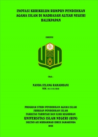 XMLNanda Jelang Ramadhani, 2022 “Inovasi Kurikulum Rumpun Pendidikan Agama Islam di Madrasah Aliyah Negeri Balikpapan”. Skripsi, Program Studi Pendidikan Agama Islam (PAI), Jurusan Pendidikan Islam , Fakultas Tarbiyah dan Ilmu Keguruan, Universitas Islam Negeri (UIN) Sultan Aji Muhammad Idris Samarinda. Penelitian ini dibimbing oleh Bapak Prof. Dr. Muhammad Nasir, M.Ag sebagai pembimbing pertama, dan Ibu Zakiyah Ulfah, M.Pd sebagai pembimbing kedua.