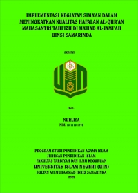 Nurlisa, 2022. Implementasi Kegiatan Sima’an dalam Meningkatkan Kualitas Hafalan Al-Qur’an Mahasantri Tahfizh di Ma’had Al-Jami’ah UINSI Samarinda. Skripsi, Program Studi Pendidikan Agama Islam, Jurusan Pendidikan Islam, Fakultas Tarbiyah dan Ilmu Keguruan, Universitas Islam Negeri Sultan Aji Muhammad Idris (UINSI) Samarinda. Penelitian ini dibimbing oleh Ibu Dr. Hj. Fathul Janah, M. SI dan Ibu Atika Muliyandari, M. Pd.