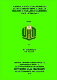 XMLNia Asuradiatni, 2022. “Pengaruh Kedisiplinan Siswa Terhadap Hasil Belajar PAI Pada Siswa di SMP Negeri 2 Kota Bangun”. Skripsi, Program Studi Pendidikan Agama Islam Jurusan Pendidikan Islam Fakultas Tarbiyah dan Ilmu Keguruan Universitas Islam Negeri Sultan Aji Muhammad Idris Samarinda. Penelitian ini dibimbing oleh ibu Dra. Etty Nurbayani, M. Pd sebagai pembimbing I dan bapak Anwaril Hamidy, M. Pd sebagai pembimbing II.