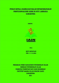 Devy Oktaviani. 2021, Peran Kepala Madrasah Dalam Mengembangkan Profesionalisme Guru di MTs Labbaika Samarinda. Skripsi, Jurusan Pendidikan Islam, Program Studi Manajemen Pendidikan Islam Fakultas Tarbiyah dan Ilmu Keguruan, Universitas Islam Negeri (UIN) Sultan Aji Muhammad Idris Samarinda. Penelitian ini dibimbing oleh Prof. Dr. H. Mukhammad Ilyasin, M. Pd dan Dr. Hj. Ity Rukiyah, M. Si.