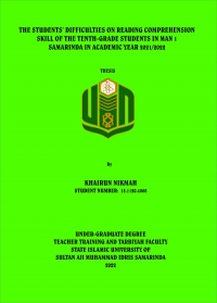 KHAIRUN NIKMAH, 2022. The student’s Difficulties on Reading Comprehension Skill of the Tenth-grade Students in MAN 1 Samarinda in Academic Year 2021/2022. Thesis, English Education Department, Teacher Training and Tarbiyah Faculty, Sultan Aji Muhammad Idris Islamic University of Samarinda. This research is under the guidance of Mr Dr. Umar Fauzan, M.pd. as the first advisor and Mrs Dra. Sitti Hadijah, M.Pd as the second advisor.