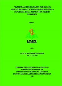 XMLAmalia Miftakhurrohmah, (1711101030). “Pelaksanaan Pembelajaran Daring pada Mata Pelajaran PAI di Tengah Pandemi Covid-19 pada Siswa Kelas XI IPA di SMA Negeri 6 Samarinda”, Skripsi, Jurusan Pendidikan Islam, Fakultas Tarbiyah dan Ilmu Keguruan. Institut Agama Islam Negeri (IAIN) Samarinda. Penelitian ini dibimbing oleh Dra. Ananiah, M.M.Pd selaku pembimbing I dan Amalia Nur Aini, M.Pd selaku pembimbing II.