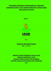 XMLBaimase Sunarsih Tuakia, 2021’’ Pengaruh Pendidikan Kepramukaan Terhadap Karakter Siswa Di MTs Darud Da’wal Wal Irsyad ( DDI ) Tani Aman Loa Janan,’’ Skripsi Jurusan Pendidikan Islam, Fakultas Tarbiyah dan Ilmu keguruan Institut Agama Islam Negeri ((IAIN) Samarinda. Penelitian ini di bawah bimbingan Bapak Prof. Dr. H. Mukhamad Ilyasin, M.Pd selaku pembimbing I dan Ibu Dr. Hj. Ity Rukayah, M.Si selaku pembimbing ll.